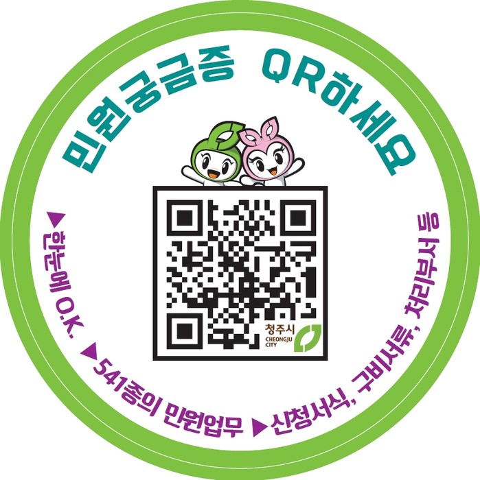 청주시 관계자는 “QR코드를 통해 민원업무 정보에 대해 쉽고 편리하게 접근할 수 있을 것으로 기대되며, 앞으로도 시민들의 민원 편의성 제고를 위해 적극 노력하겠다”고 말했다.