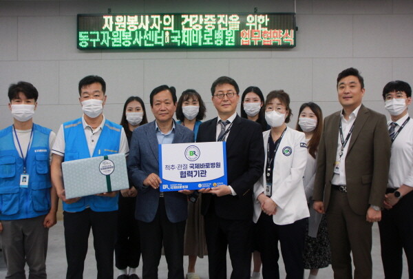 국제바로병원 김종환 행정부원장은 “동구자원봉사센터와 국제바로병원의 인연은 코로나19 봉사일원으로 동구자원봉사자들에게 마스크 1만7천장을 기부한 바 있다”고 말했다.