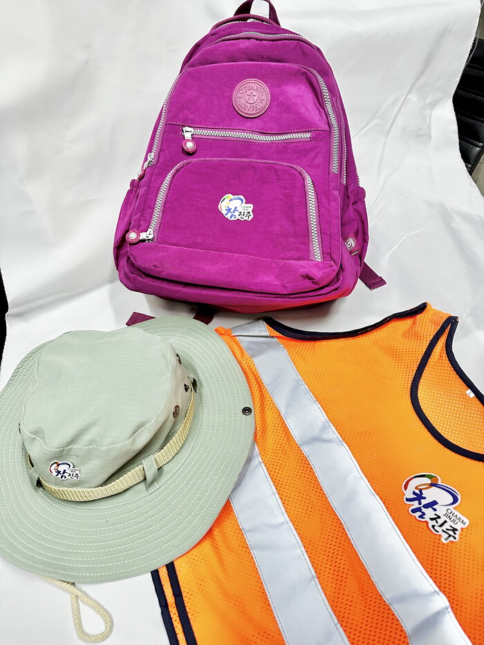 모자와 안전조끼에는 어린이집 명칭과 전화번호가 기재 되어 있어 현장학습 및 단체 야외활동 시 미아 발생 등 안전사고를 예방하고, 가방에는 진주시 브랜드 ‘참진주’가 기재 되어 공용으로 사용할 수 있도록 하였다.