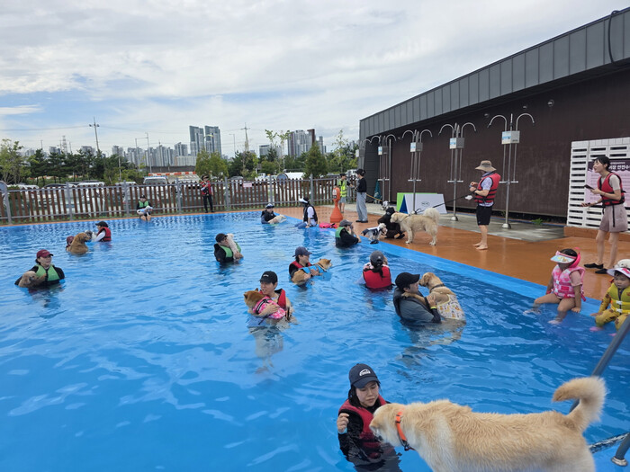 | ▲ 반려동물 수영 문화교실(멍푸멍푸) 현장 /사진제공=시흥시 |