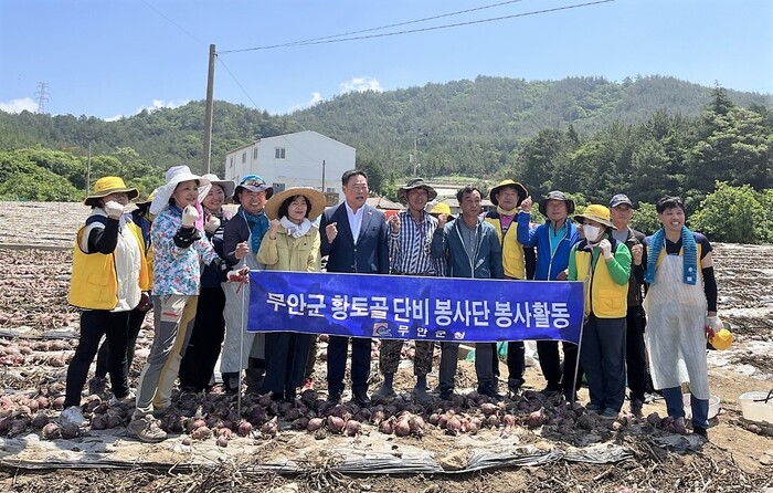 김산 무안군수는 “휴일임에도 농촌 일손 돕기에 참여해 주신 황토골 단비 봉사단 회원에게 감사드린다”고 말했다.