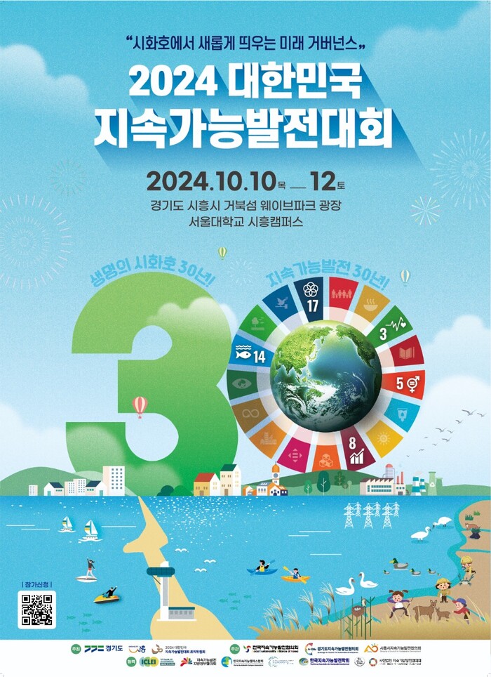 [시흥=송윤근 기자] 2024 대한민국 지속가능발전대회가 경기도 시흥에서 열린다. 오는 10월 10일부터 12일까지 사흘간 열리는 이번 대회에서는 ‘시화호에서 새롭게 띄우는 미래 거버넌스’를 슬로건으로, 정부와 지자체, 전문가와 시민이 모두 모여 현재를 가꿔 내일을 여는 방법을 다양한 형식으로 통해 모색한다.