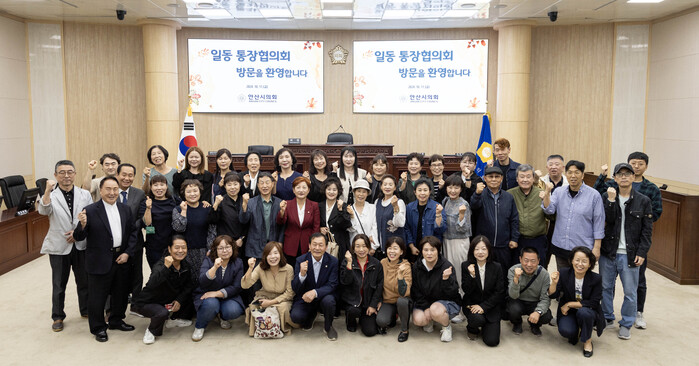 | ▲ 안산시의회가 11일 일동 통장협의회 회원들을 대상으로 의회 견학 프로그램을 운영했다. 사진은 이날 견학 참석자들이 기념촬영에 임하고 있는 모습 /사진제공=안산시의회 |