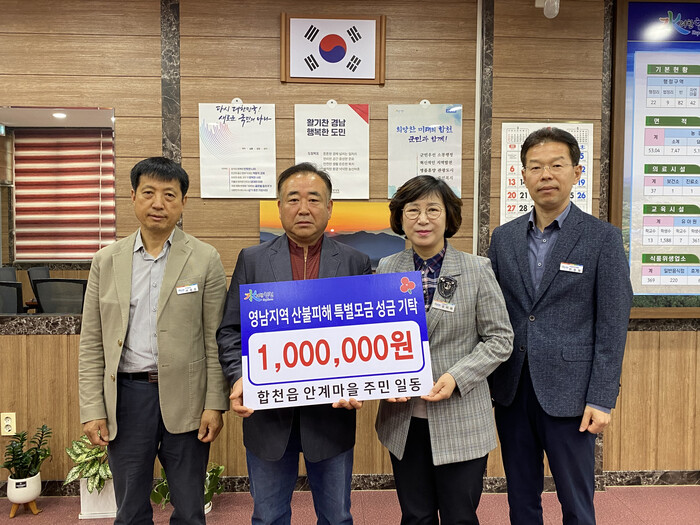 오미화 합천읍장은 “뜻깊은 일에 동참해주신 이장님과 안계마을 주민들께 감사드리며, 도움이 필요한 곳에 쓰일 수 있도록 잘 전달하겠다”고 말했다.