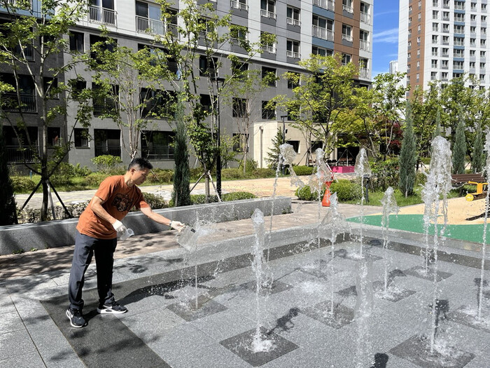 | ▲물놀이형 수경시설 점검 모습 /사진제공=시흥시 |