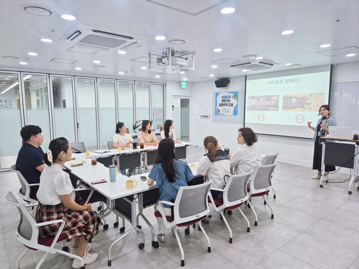 | ▲지난 6월 13일 (재)시흥시인재양성재단은 공정무역의 개념과 윤리적 소비 문화에 대한 교육을 진행하고 있다 /사진제공=시흥시 |