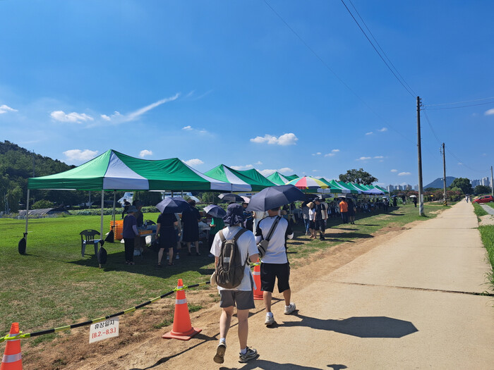 [시흥=송윤근 기자] 경기 시흥시 지역 농산물을 구매할 수 있는 ‘시흥시 농부장터’가 8월 10일 종료 예정이었으나, 시민들의 뜨거운 성원에 힘입어 9월 14일까지 연장 운영된다.