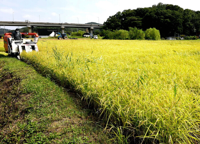 | ▲조생종 벼베기 모습 /사진제공=시흥시 |