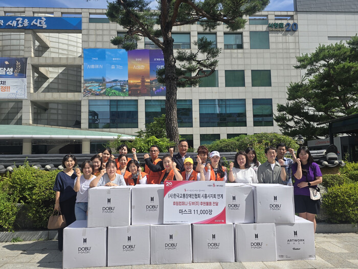 [시흥=송윤근 기자] 경기 시흥시(시장 임병택)는 지난 7월 23일 시청 내에서 장애인의 건강한 근로환경 조성과 복지 향상을 위해 장애인직업재활시설 내음 공간과 장애인일자리 수행기관인 시흥시장애인종합복지관 등 관내 장애인 일자리 관련 기관 11곳을 대상으로 ‘마스크(11,000장)’을 전달하는 후원식’을 열었다.