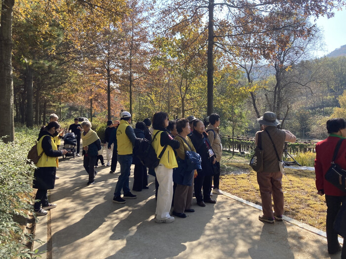 | ▲ 시흥시 정왕본동, 독거 어르신과 함께하는 ‘효 사랑 공감 힐링 여행’을 하고 있는 모습 /사진제공=시흥시 |