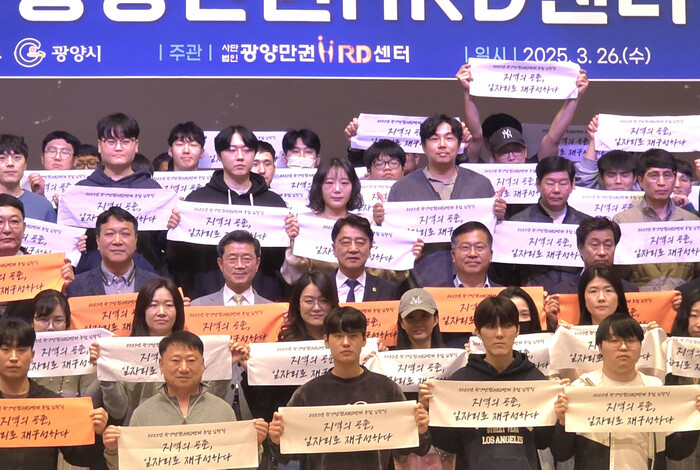 [남악=황승순 기자]전라남도의회 김태균 의장은 3월 26일 오후 2시 광양커뮤니티센터 1층 다목적 홀에서 개최된 ‘2025년 ⁎광양만권HRD센터 통합 입학식’에 참석해 축하와 함께 “취업 성공을 위한 원스톱 지원공간이 되어 줄 것”을 당부했다.