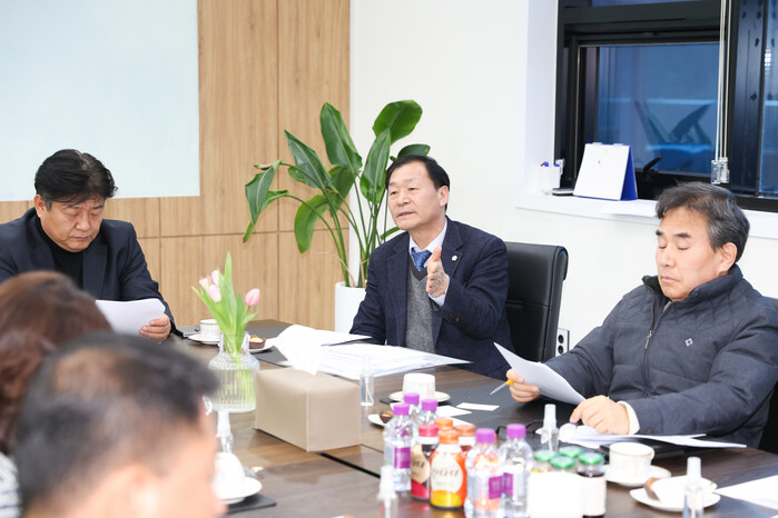 시의회 박태순 의장은 지난 9일 팔곡일반산업단지 입주 기업인 네오팜그린에서 산단 조성에 따른 입주기업들의 애로사항을 청취하고 해결책을 모색하고자 간담회를 개최했다.