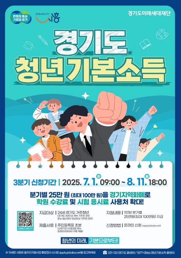 [시흥=송윤근 기자] 경기 시흥시(시장 임병택)는 7월 1일부터 8월 11일까지 ‘2025년 3분기 청년기본소득’ 지급 신청을 받는다.