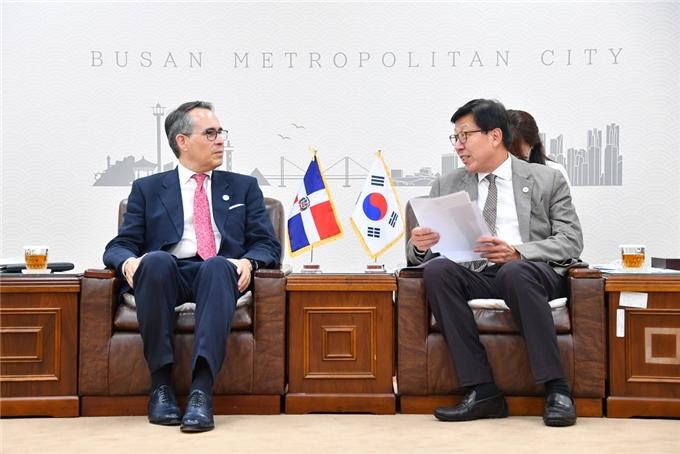 부산-산토 도밍고(수도) 간 관광·기술·환경·예술·문화 분야 교류를 포함한 자매⸱우호 협력 도시 의사 담은 서한문 전달 등 중남미 교류 확대 방안 논의