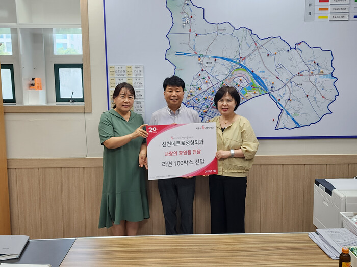 [시흥=송윤근 기자] 경기 시흥시 신천동에 있는 신천메트로정형외과는 지난 7월 25일 시흥시 마을자치과를 방문해 취약계층을 위한 라면 100상자를 기탁했다.