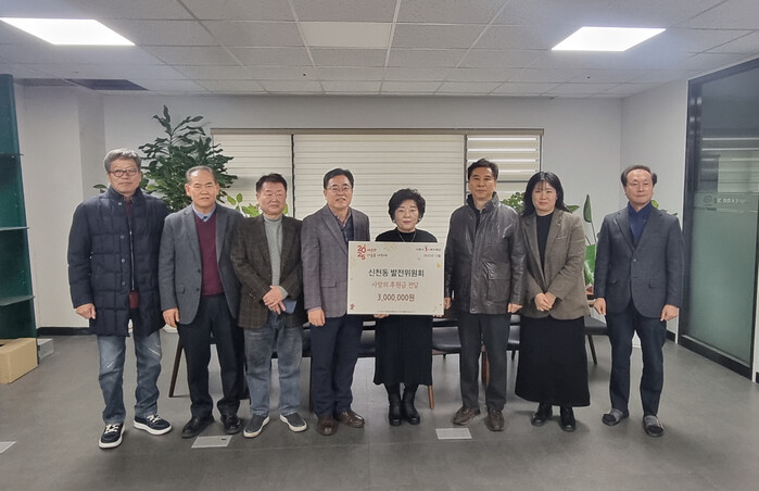 [시흥=송윤근 기자] 지역사회 발전을 위해 모인 신천동 발전위원회에서 지난 12월 23일 신천동 취약계층 지원을 위한 후원금 300만 원을 전달했다.