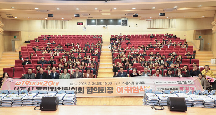 [시흥=송윤근 기자] 경기 시흥시 주민자치협의회는 지난 2월 24일 시청 늠내홀에서 제20대 시흥시 주민자치회장 이취임식을 열었다.