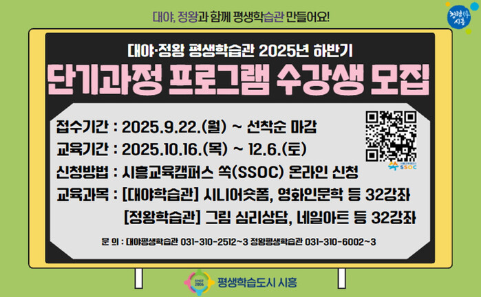 | ▲ 시흥시 '대야·정왕평생학습관 하반기 단기과정 프로그램 수강생 모집' 안내 홍보문 /자료제공=시흥시 |