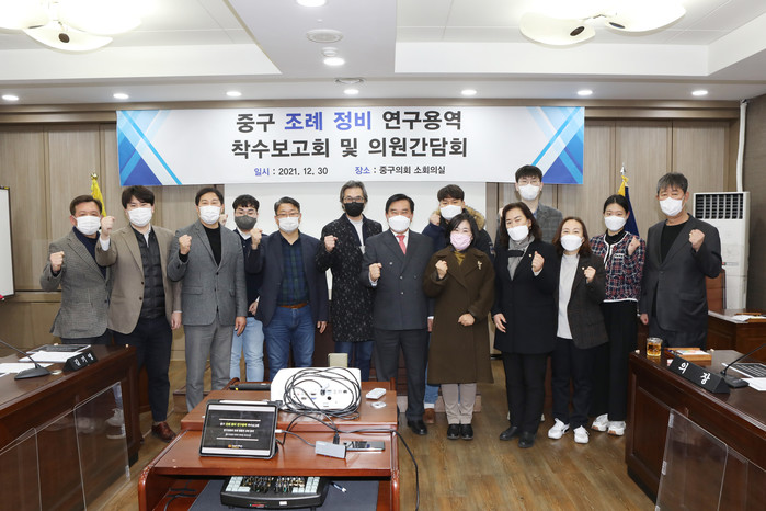 [시민일보 = 여영준 기자] 서울 중구의회 의원연구단체인 중구 조례·정책 연구회(회장 길기영)는 지난 12월30일 구의회 소회의실에서 조례정비연구용역 착수보고회를 개최했다.