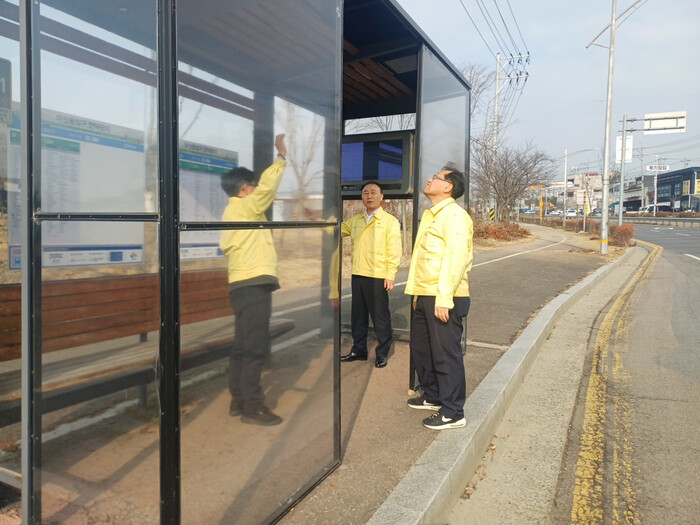 이날 박영덕 안전교통국장을 비롯한 관계자들은 제설함의 제설제 비축 상태와 장비 관리 상황을 확인하고, 버스정류장에 설치된 방풍 시설의 작동 여부와 한파 차단 효과를 점검했다. 특히 방풍막이 실제 시민들에게 어느 정도 추위를 막아주는지를 직접 살피며 시설 안전성과 실효성을 면밀하게 확인했다.