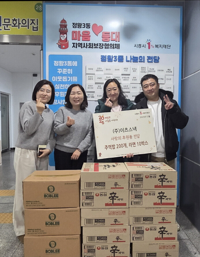 권재은 ㈜이츠스낵 대표는 “지역사회 내 어려운 이웃을 도울 수 있어 기쁘다”라며 “맛있는 주먹밥과 라면이 작은 위로가 되길 바라며, 앞으로도 나눔을 실천하며 이웃과 함께하는 기업이 되도록 노력하겠다”라고 말했다.