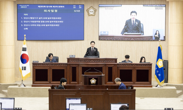 [안산=송윤근 기자] 경기 안산시의회(의장 송바우나)가 23일과 24일 제285회 임시회 제2차 본회의와 제3차 본회의를 잇달아 열어 5분 자유발언 등을 실시하고 총 24건의 안건을 의결하며 임시회 회기를 마쳤다.