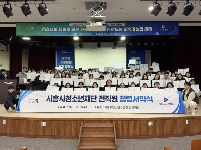 [시흥=송윤근 기자] 경기 시흥시청소년재단은 지난 12월 3일 전 직원이 참석한 가운데 ‘청렴서약식’을 개최하고 투명하고 윤리적인 조직 운영을 위한 확고한 의지를 다졌다.