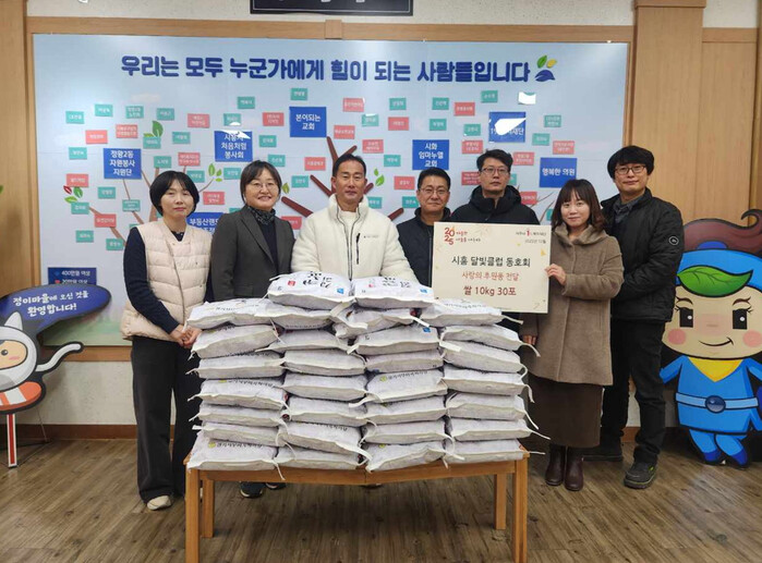[시흥=송윤근 기자] 경기 시흥시 정왕동을 기반으로 활동하고 있는 달빛클럽 동호회가 지난 12월 9일 연말을 앞두고 지역 내 어려운 이웃을 위한 쌀 10kg 30포(총 300kg)를 정왕2동 행정복지센터에 기부했다.