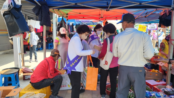 | ▲ 신안보건소는 지난 4월부터 총 2회에 걸쳐 지도읍, 임자면 등 관내 축제장과 전통시장 일원에서 치매조기검진 및 건강생활실천 캠페인을 실시했다.(출처=신안군) |