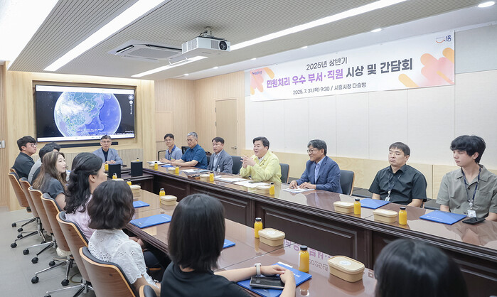 | ▲ 시흥시 2025년 상반기 민원처리 우수 부서 및 직원 시상식과 간담회를 진행하고 있다 /사진제공=시흥시 |