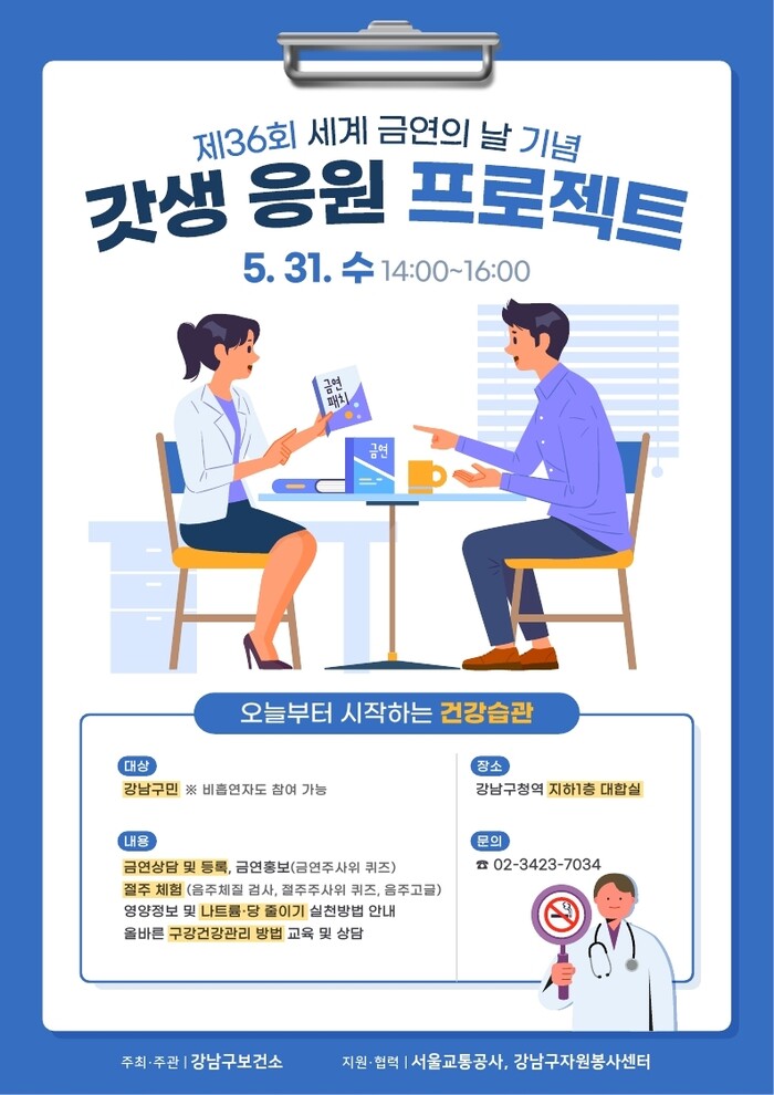 조성명 구청장은 “이번 캠페인을 통해 금연뿐만 아니라 절주, 영양, 구강 관리 등 통합적인 건강관리의 중요성을 알리고자 한다”며 “앞으로도 구민들이 금연에 관심을 갖고 실천할 수 있도록 다양한 지원을 해나가겠다”고 말했다.