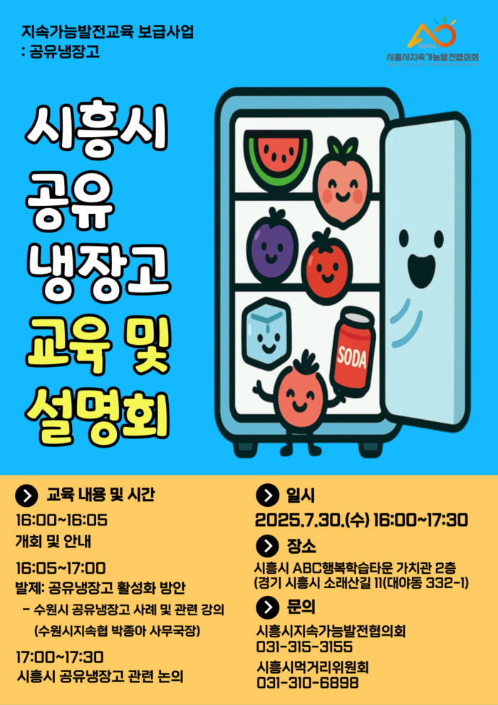 한편, 두 번째 설명회는 8월 6일 오후 4시, 시흥시 청년스테이션(정왕권역)에서 개최된다. 시흥시는 향후 설명회를 기반으로 공유냉장고 운영을 시 전역으로, 점진적으로 확대해 나갈 계획이다.