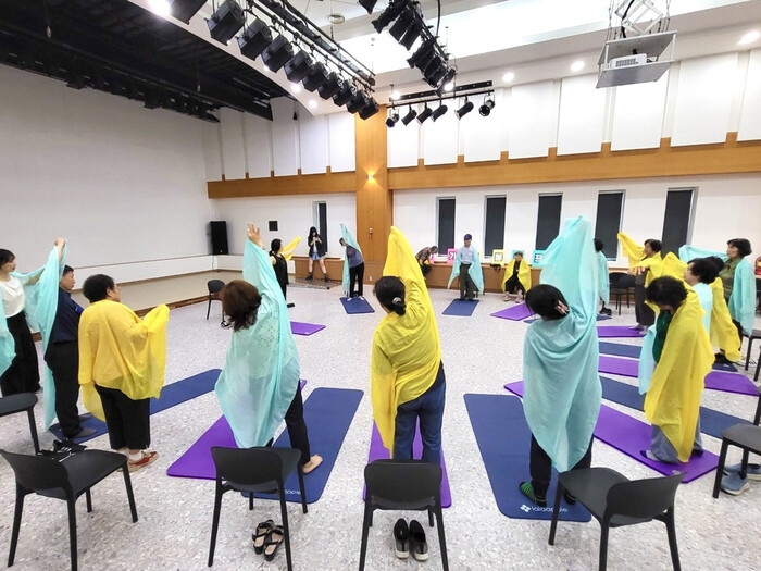 이날 프로그램에는 치매환자 및 가족 17명이 참여했으며 ▲그림책으로 돌보는 마음 ▲이완을 돕는 호흡과 스트레칭 ▲움직임 명상(어센틱 무브먼트) ▲자조모임 등 총 4개 세션으로 진행됐다. 특히, 무용심리치료 기법을 활용한 ‘어센틱 무브먼트’ 시간에서는 참가자들이 자유롭게 자신의 감정을 몸으로 표현하며 정서적 안정과 회복의 시간을 가졌다.‘
