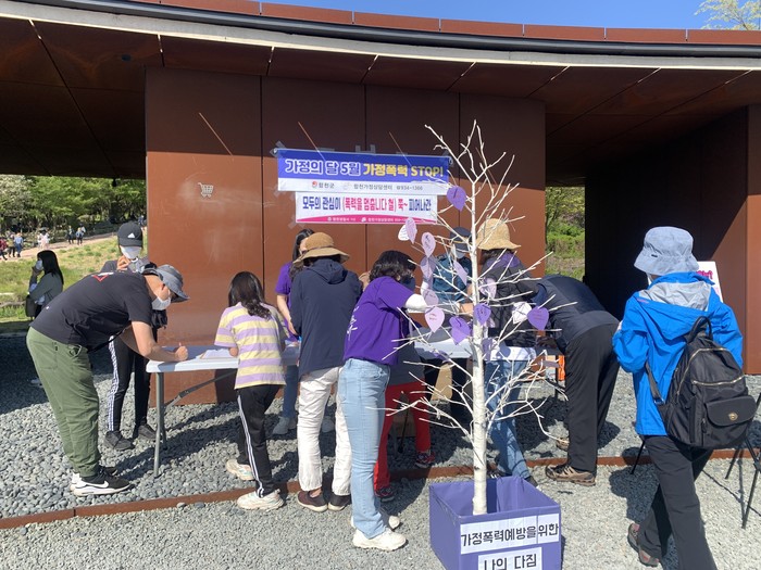 또한 캠페인 참여자들을 대상으로 가정폭력, 데이트 폭력 등 친밀한 관계에서 발생할 수 있는 폭력을 예방하기 위해 나의 다짐을 적어 나무에 달아보는 행사와 퀴즈를 통해 폭력에 대한 정보를 알아보는 시간도 가졌다.