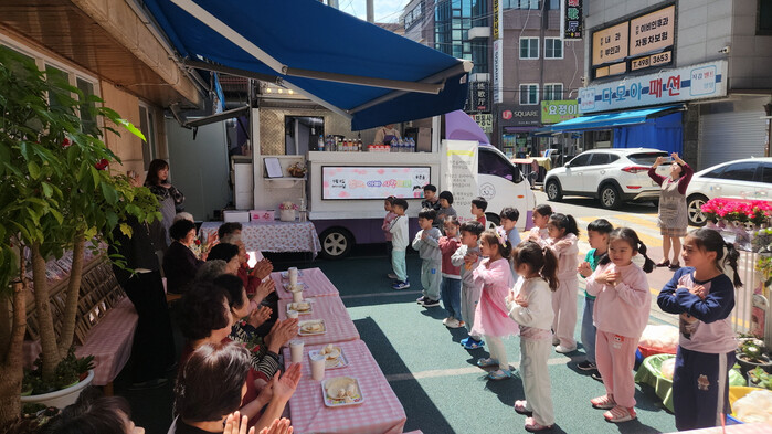 푸른솔어린이집은 매년 어버이날을 맞아 인근 경로당 어르신을 초청해 세대 간 정을 나누는 자리를 마련해 왔으며, 올해도 정성스럽게 준비한 음식과 원생들의 깜찍한 공연을 통해 따뜻한 시간을 함께했다.