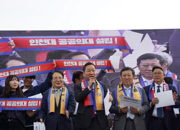 또 인천평화복지연대, 인천경실련, 인천시새마을회 등 범시민협의회 공동대표들이 함께 했다. 인천대는 그동안 시민 토론회, 캠페인 등을 통해 공공의대 필요성을 지속적으로 알려왔고 14만 6천여 명의 서명을 받았다.