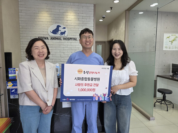 이번 후원은 명절을 맞아 소외된 이웃이 따뜻한 정을 나누며 풍성한 추석을 보낼 수 있도록 마련됐다. 후원금 전달식에는 하중희 시화종합동물병원 원장과 박경아 정왕3동 지역사회보장협의체 위원, 양미현 정왕3동장이 함께했다.