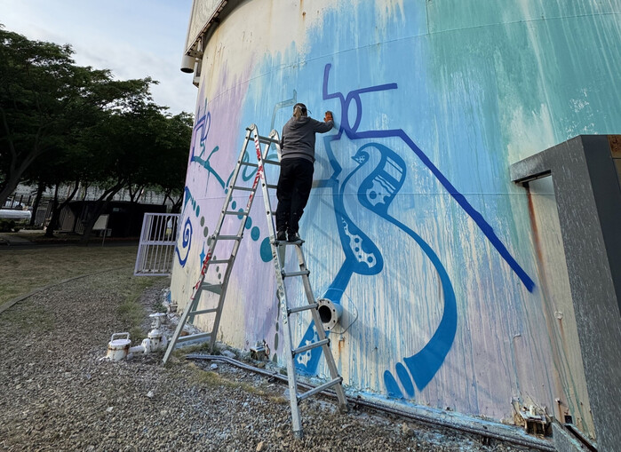 [시흥=송윤근 기자] 경기 시흥시 맑은물상상누리의 대형 가스통이 그래피티 작품으로 변신했다. 스페인의 유명 그래피티 작가 2인이 맑은물상상누리의 놀이통 외벽을 캔버스 삼아 개성 가득한 대형 그래피티 작품을 선보인 것이다.