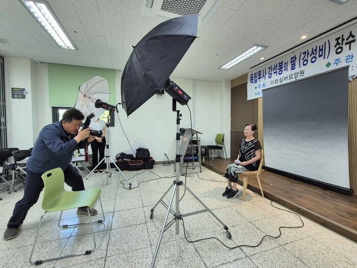 | ▲지난 6월 11일 시흥시장곡종합사회복지관에서 진행된 호국보훈의 달 맞이 장수사진 촬영을 하고 있다 /사진제공=시흥시 |