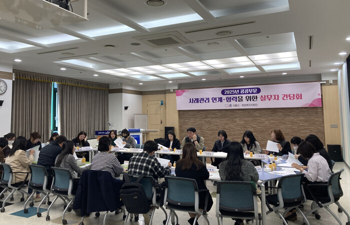 이번 간담회에는 ▲통합사례관리 ▲노인맞춤돌봄서비스 ▲드림스타트 ▲아동보호서비스 ▲방문건강관리 ▲의료급여사례관리 ▲자활사례관리 ▲정신건강사례관리 등 공공 사례관리를 수행하는 8개 부서에서 23명이 참석했다. 이들은 기관별 사업 현황과 자원, 다양한 사례관리 현장 경험을 공유하며 부서 간 상호이해와 협력 증진을 위한 소통의 시간을 가졌다.