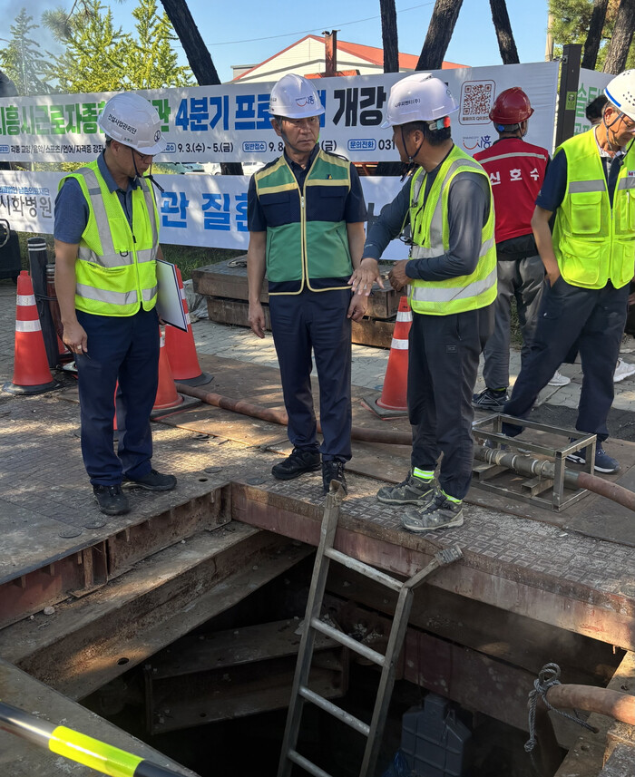 | ▲ 시흥시는 10일 맑은물사업소에서 추진 중인 정왕지역 배수본관 복선화사업 현장의 시설물 및 공사 전반에 대한 안전점검을 진행하고 있다 /사진제공=시흥시 |