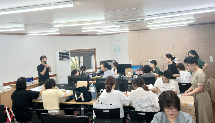 | ▲ 군포시 무한돌봄센터는 8월 20일 군포시청 통계실에서 통계조사원 18명을 ‘군포시명예사회복지공무원’으로 위촉하고 복지사각지대 및 고립가구 발굴 협력을 위한 교육을 진행하고 있다 /사진제공=군포시 |