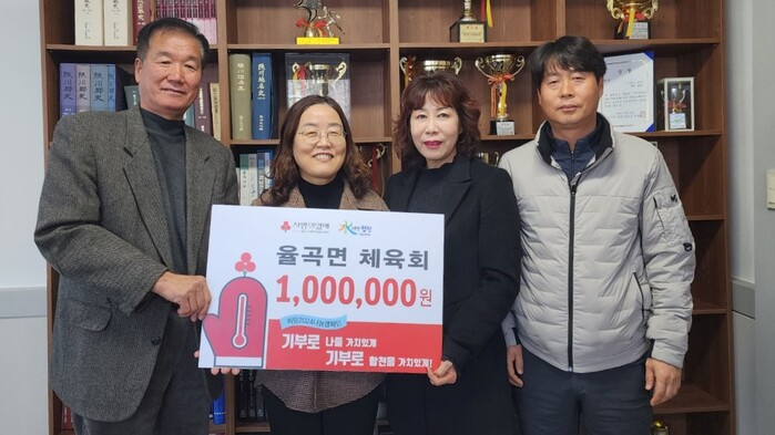 정경희 율곡면장은 “경기가 좋지 않은 어려운 상황에서도 매년 성금 기탁을 이어가고 있는 율곡면체육회에 깊은 감사를 드린다. 도움이 필요한 이웃들에게 따뜻한 마음이 전해질 수 있도록 잘 전달하겠다”고 전했다.