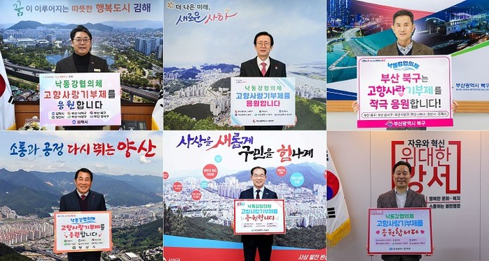 홍태용 김해 시장은 이날 오전 시장실 에서 ‘낙동강 협의체 는 고향 사랑 기부 제를 응원 합니다 ’라고 써진 손 팻말을 들고 협의체 상생 홍보의 시작을 알렸다.