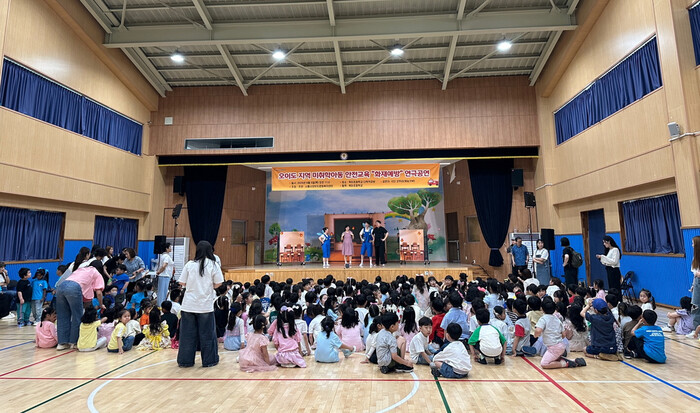 [시흥=송윤근 기자] 경기 시흥시 오이도문화복지센터는 지난 6월 5일 옥터초등학교 강당에서 지역 ‘미취학 아동을 위한 화재 예방 안전교육 연극’을 성황리에 마쳤다.