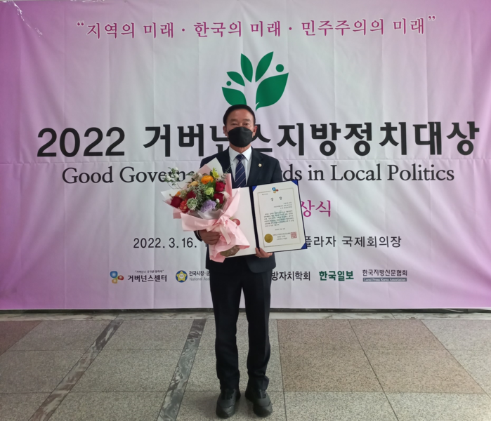 | ▲ 목포시의회 장복성 의원, 2022년 거버넌스지방정치대상 수상(출처=장복성 의원실) |