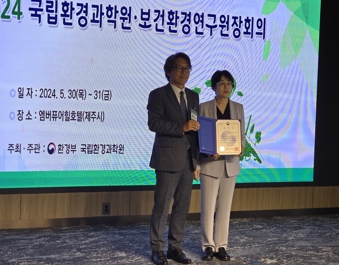 특히 국립환경과학원과 긴밀한 협조체계를 구축·유지하며, 지역사회 민간 검사기관의 분석능력 향상을 위한 기술교육 등을 실시해 환경분야 국제적 적합성 기반 구축, 국립환경과학원과 공동 연구 사업 추진을 통해 정책 수립에 기여한 공로를 인정받았다.