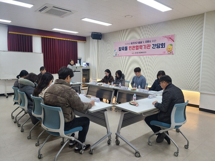 | ▲ 시흥시 장곡동 행정복지센터는 2023년 11월, 시흥장현 LH 17, 18, 19, 23단지 공공임대아파트 센터장들과 민관 협력체계 구축을 위한 업무 협약을 체결한 이후 간담회를 진행하고 있다 /사진제공=시흥시 |