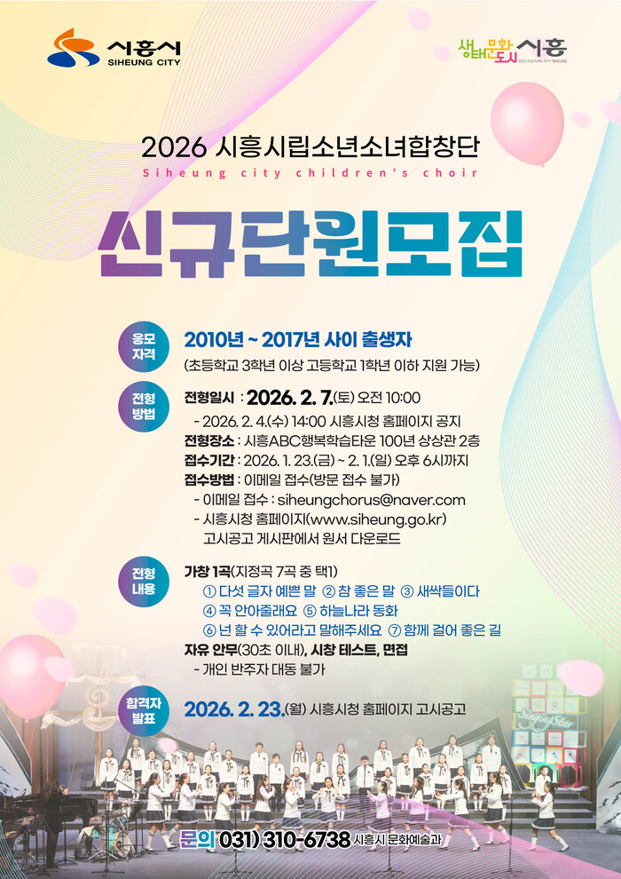 | ▲ ‘2026년도 시흥시립소년소녀합창단’ 신규단원 모집 안내문 /자료제공=시흥시 |