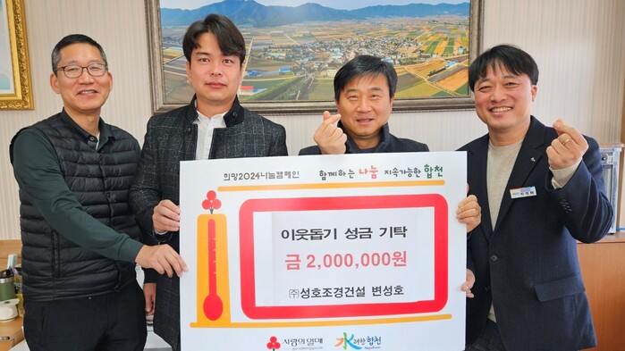 서문병관 적중면장은 “어려운 이웃을 위해 성금을 기탁해주셔서 감사드린다. 도움이 필요한 이웃에게 따뜻한 온기가 전해지도록 잘 전달 드리겠다”고 전했다.